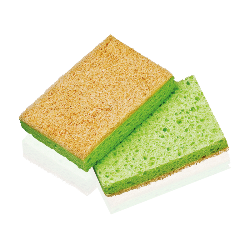 Two double-action sponges made of plant-derived cellulose and biodegradable 100%.