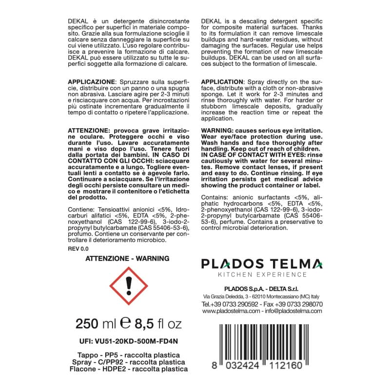 - 250 ml – DEKAL, anticalcare studiato per i lavelli Plados